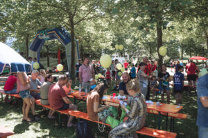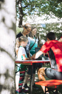 Der Platz vor der Dreifachturnhalle ist Kaffee & Kuchen, Essen & Getränke bewirtet. Auch ein vegetarisches und veganes Angebot werden wir anbieten.