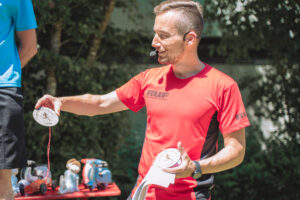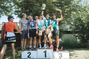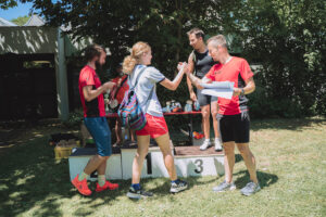 Jede Staffel bekommt neben den Startnummern auch einen Staffelstab, der die Zeitnahme sicherstellt. Bitte beachtet, dass der Wechsel auf den nächsten Läufer unter dem Zielbogen hinter der Zeitmatte stattfinden muss. Nur so kann jeder Läufer gewertet werden.